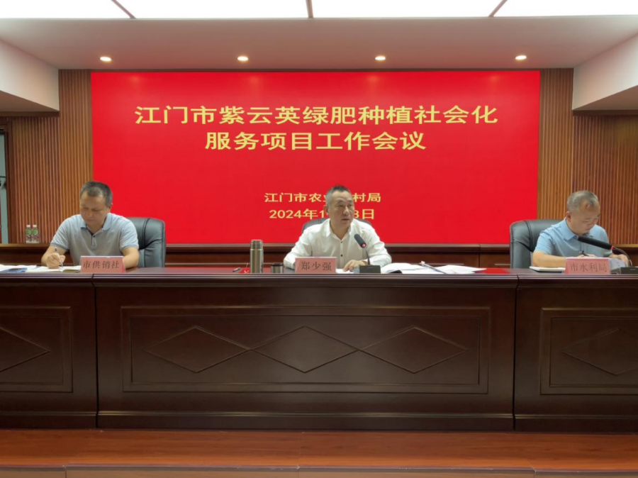 为深入贯彻落实省农业农村厅紫云英绿肥种植工作部署,进一步推动做好我市紫云英绿肥种植社会化服务项目工作,2024年11月8日下午,江门市农业农村局组织召开全市紫云英绿肥种植社会化服务项目工作会议。江门市农业农村局局长郑少强主持会议。市水利局、市供销社分管领导,江门市农业农村局总农艺师,相关业务科室负责人,市农科所、市农技中心负责人,各县(市、区)农业农村局主要领导,相关业务股室负责人,承担紫云英绿肥种植省、市两级任务的相关镇(街)分管领导,广东农垦江门代表,广东供销江门代表,中国人民财产保险股份有限公司江门市分公司、阳光农业相互保险公司江门中心支公司、中国平安财产保险股份有限公司江门中心支公司、各有关农服公司代表参加了会议。