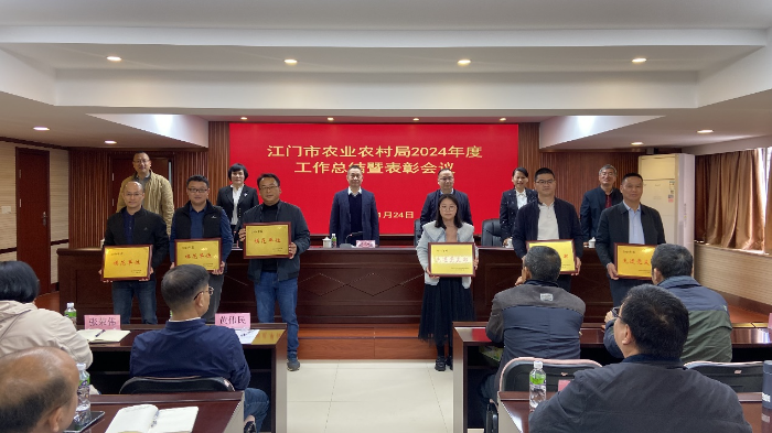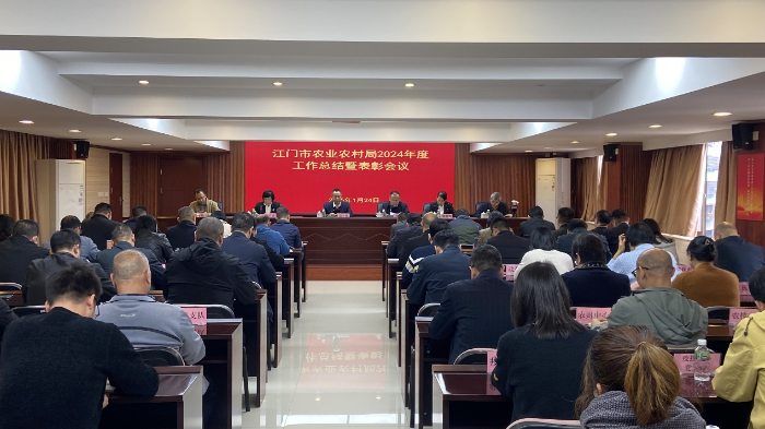 市委农办主任、市农业农村局党组书记、局长郑少强同志对2024年度工作进行了总结,他指出,2024年,我们深入贯彻习近平总书记关于做好“三农”工作的重要指示批示精神,认真落实省委“1310”具体部署和市委“1+6+3”工作安排,全市实现农林牧渔业总产值增速连续3年全省前3;粮食生产取得历史性突破,粮食产量首破100万吨,成为全省5个产量“破百”的产粮大市之一;六大优势农业全产业链总产值持续保持高增长,高标准建设广东(江门)渔港经济区,培育260个省“百千万工程”典型村,数量居全省第2;60%以上村集体经营性收入超100万元,城乡居民收入比持续收窄至1.77:1。