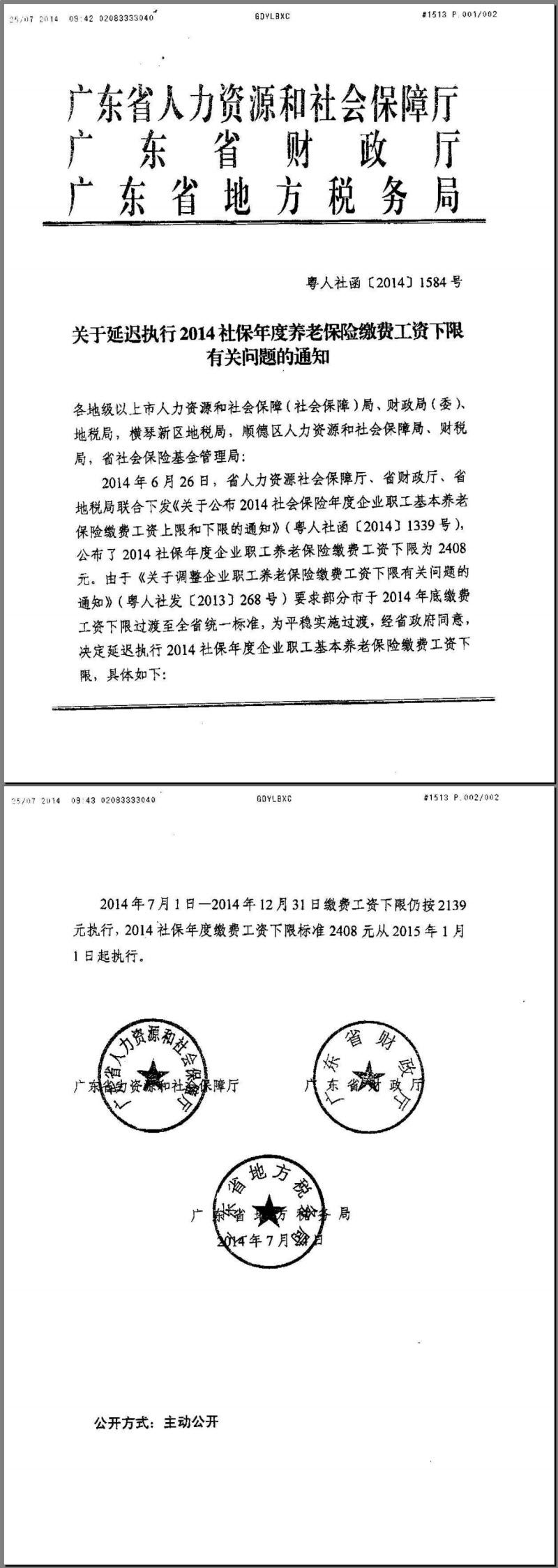 现将省人力资源和社会保障厅、省财政厅、省地方税务局《关于延迟执行2014社保年度养老保险缴费工资下限有关问题的通知》(粤人社函〔2014〕1584号)转发给你们,请遵照执行。