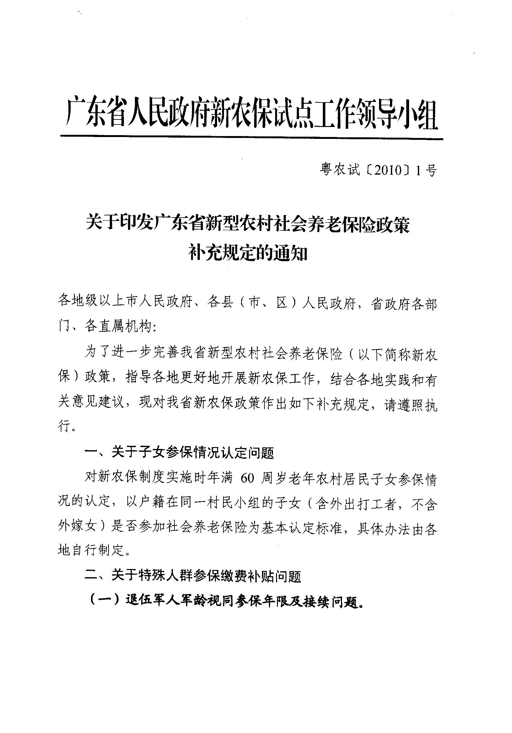 关于印发广东省新型农村社会养老保险政策补充规定的通知