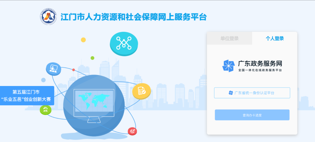(五)浏览器输入报名网址:https://rsfw.jiangmen.cn/Jmqyfwpt/index.do,进入江门市人力资源和社会保障网上服务平台;