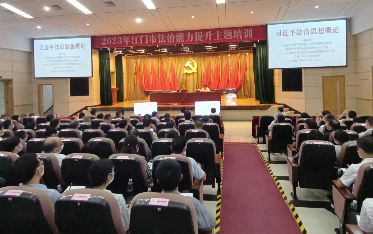 中山大学法学院杨小强教授以《习近平法治思想概论》为主题作了首场专题辅导。讲座中,杨小强教授以严谨周密的逻辑、详实丰富的案例,对习近平法治思想进行了全面系统、重点突出、生动翔实的解读。报告主题鲜明、内涵丰富,政治性、针对性、指导性都很强,为学习贯彻落实党的二十大精神和习近平法治思想提供了精准有力的指导。