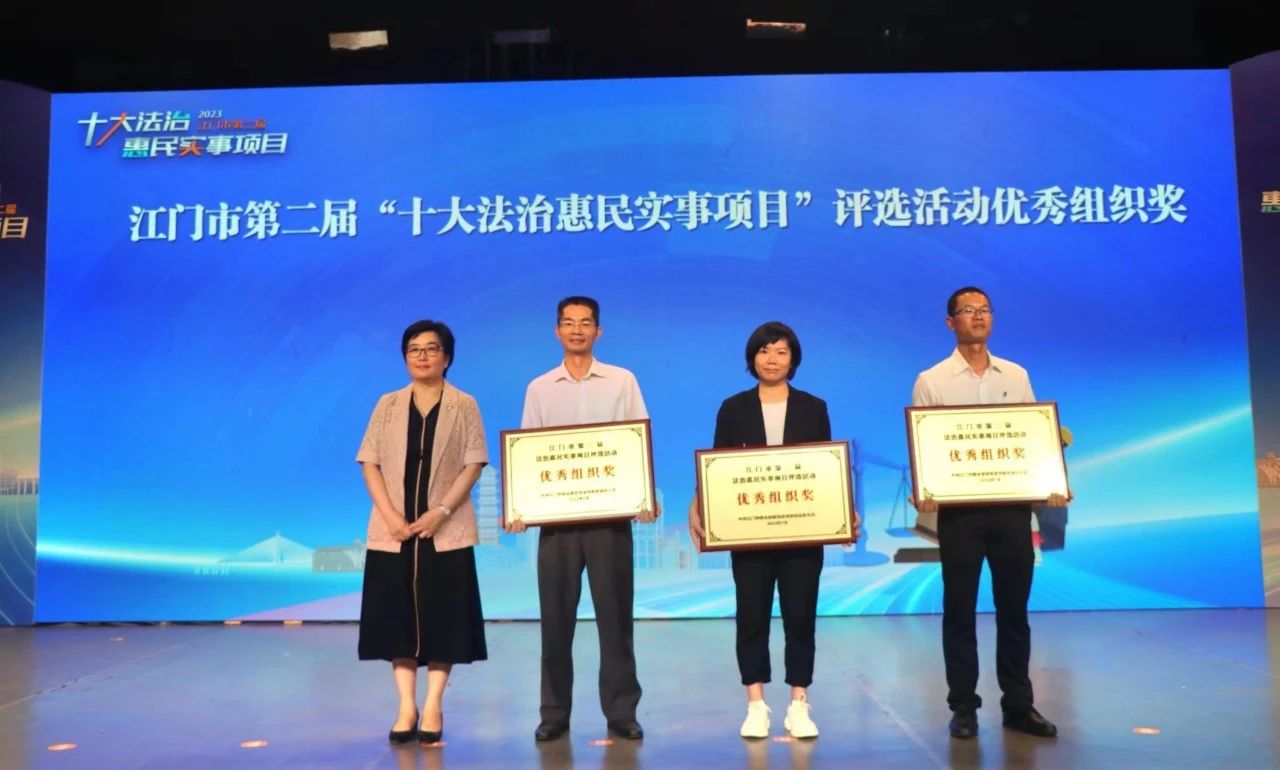 2023年7月27日,举办江门市第二届“十大法治惠民实事项目”现场集中评议会,选出年度“十大法治惠民实事项目”和“十大法治惠民实事提名项目”。