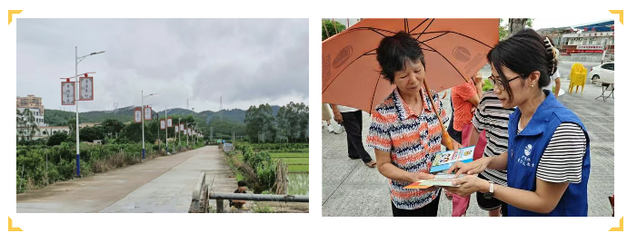 以落实“百千万工程”重点工作为切入点,进一步加大法治乡村治理普法宣传,有效释放法治文化阵地效能。区司法局派出第一书记驻点沙西村建设“法治乡道”,“法治乡道”临近村民休憩场所,是进出沙西村的主要干道,将法治乡村、和美乡村建设重点内容结合传统文化特色,设计文字对联灯牌,既富有文化气息,又通俗易懂。路通灯明为基层群众点亮法治之光,使群众在潜移默化中逐步提升法治意识。区司法局充分发挥普法工作统筹协调职能,以“八五”普法规划为抓手,广泛开展“送法下乡”普法宣传活动。2024年,依托村(居)法律顾问、法律明白人、普法志愿者等资源,组织、指导各镇(街)、部门开展各类“法律进农村”活动约300多场次,发放法治宣传资料3万余份,营造浓厚的乡村法治氛围,助力法治乡村建设。