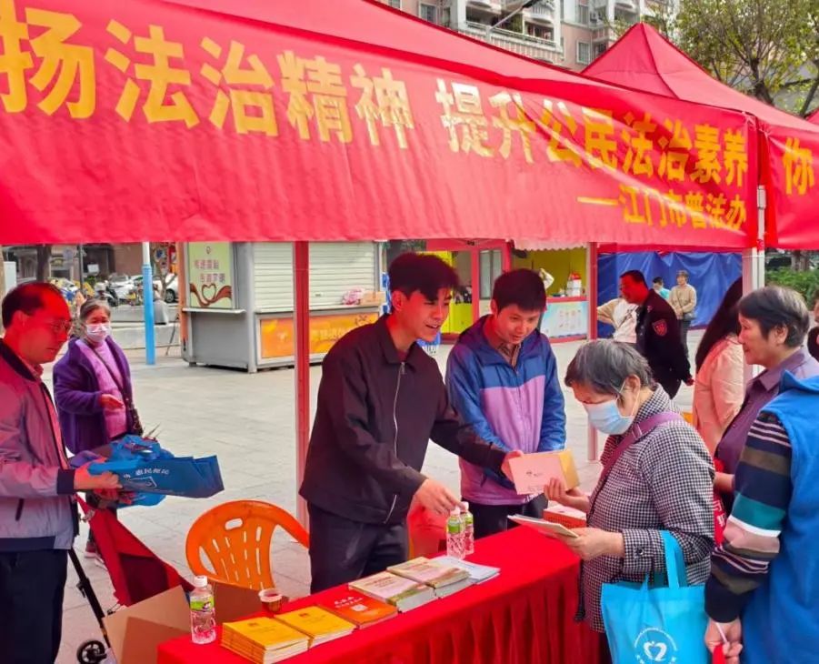 在第62个学雷锋纪念日来临之际,3月1日上午,由江门市委宣传部、市文明办主办,市司法局等多家单位协办的江门市2025年“学雷锋•文明实践我行动”主题活动在蓬江区育德文体广场举办。江门市普法办组织20名普法志愿者参加活动,以法治推动雷锋精神成为中国侨都新时代文明实践的鲜明底色。