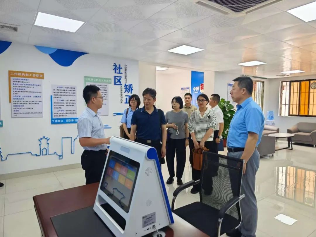 在江门市智慧社区矫正服务中心,课题组详细了解中心的功能定位、市社区矫正委员会的设置以及社区矫正工作开展情况。双方围绕推进“智慧矫正中心”创建,AI赋能社区矫正的应用探索等内容进行了深入交流,并就校地共建“社区矫正研究中心”和依托产教融合平台培养专业化社区矫正人才交换了意见。