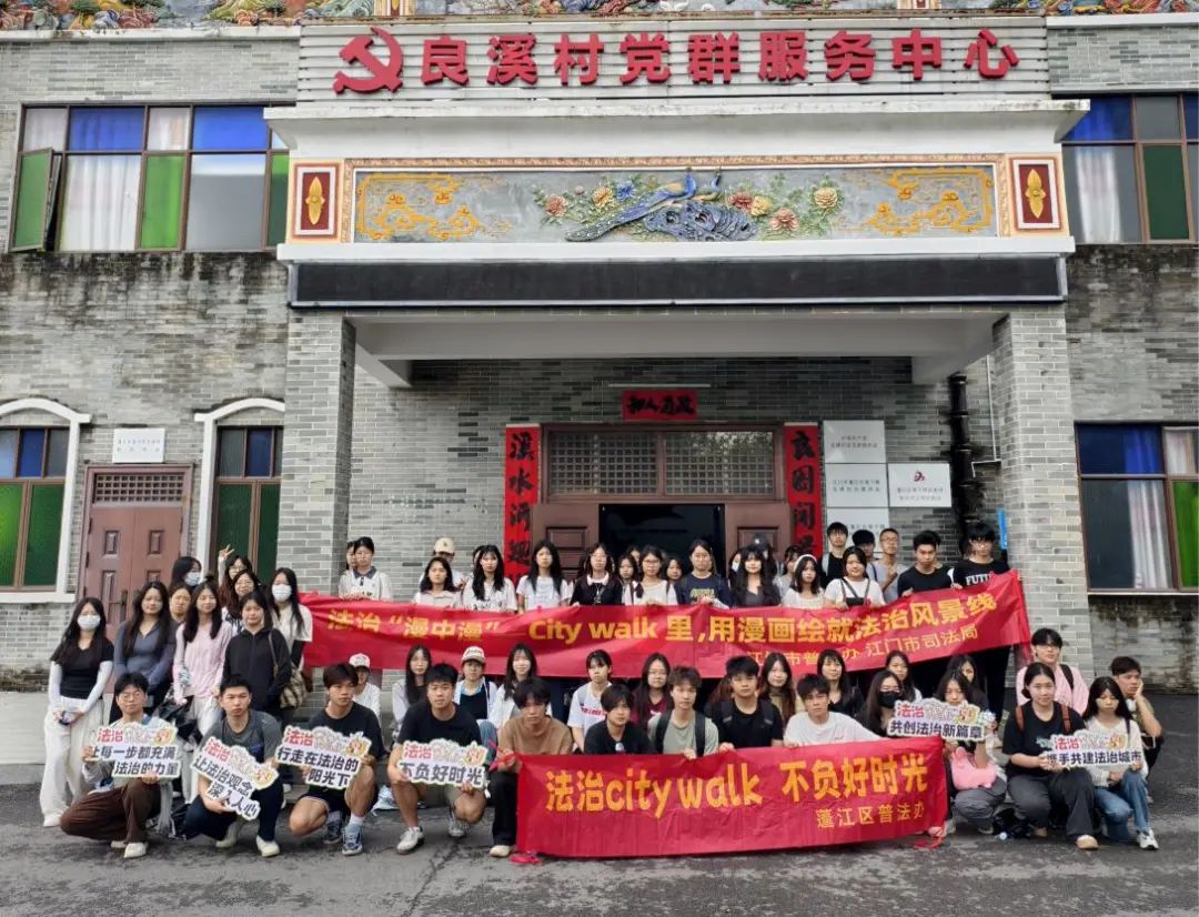 为充分发挥法治文化阵地在法治社会建设中基础性支撑性作用,持续丰富江门法治文化活动,推动法治宣传教育更加接地气、更聚人气,打造侨乡特色普法品牌,近期,市普法办、市司法局举行江门市“‘法治漫中漫’——City Walk里,用漫画绘就法治风景线”系列活动。5月8日,活动第二站组织90余名江门本地高校大学生走进全国民主法治示范村——蓬江区良溪村和鹤山市陈山村。