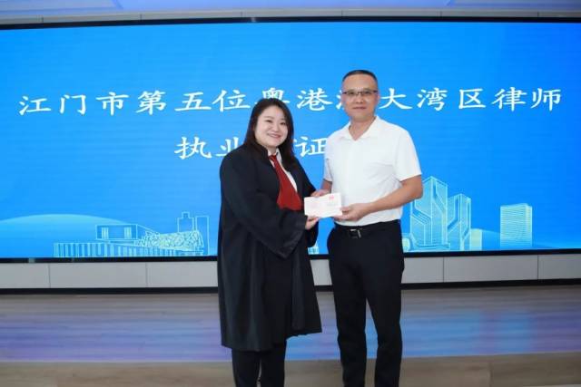 活动现场,彭高宴为第五位获准在我市执业的粤港澳大湾区律师冯颖琨颁证。冯律师的加入进一步充实了我市涉外法律服务队伍,为我市涉外法律服务增添了新的活力与动能。