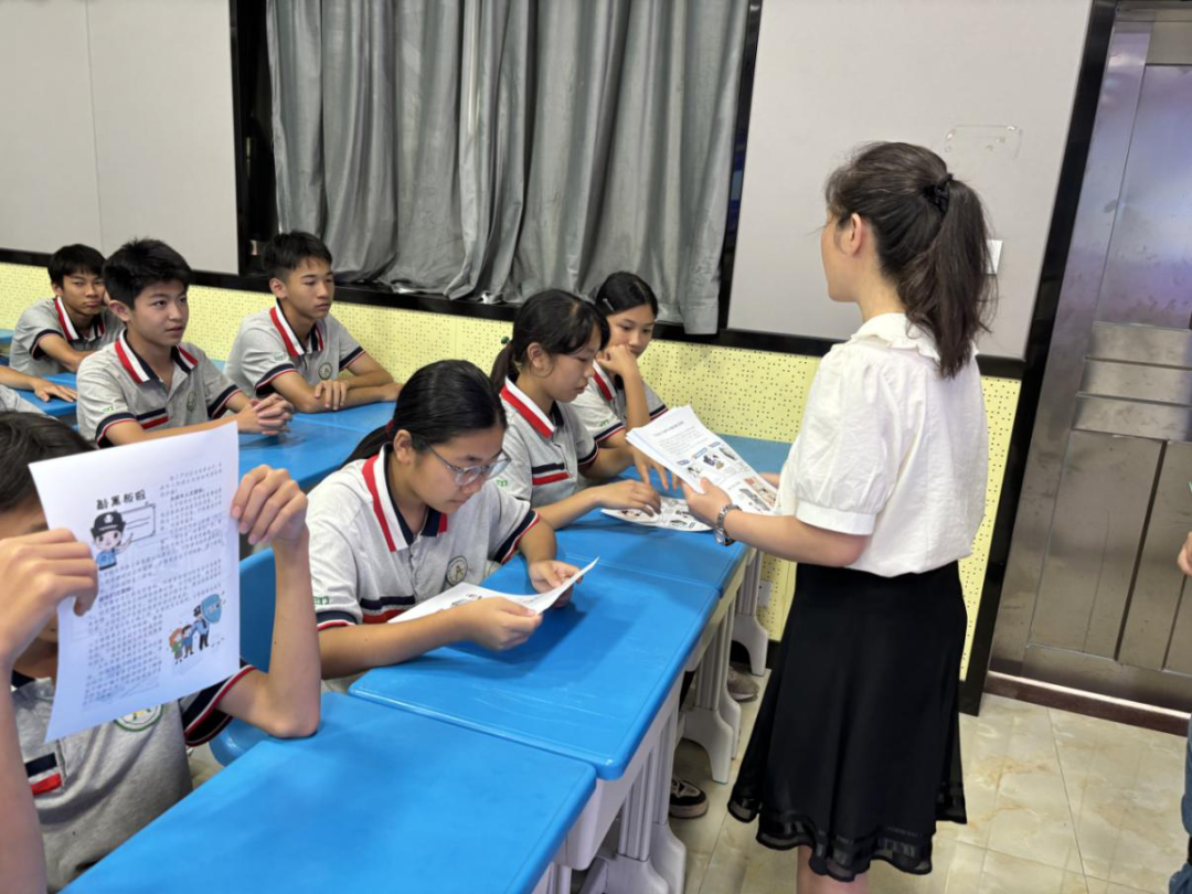 同时,为防范电信网络诈骗,江海区普法办为到场的师生讲解防诈识骗知识,并派发相关的宣传资料,教育同学们刷亮双眼,切勿上当受骗。