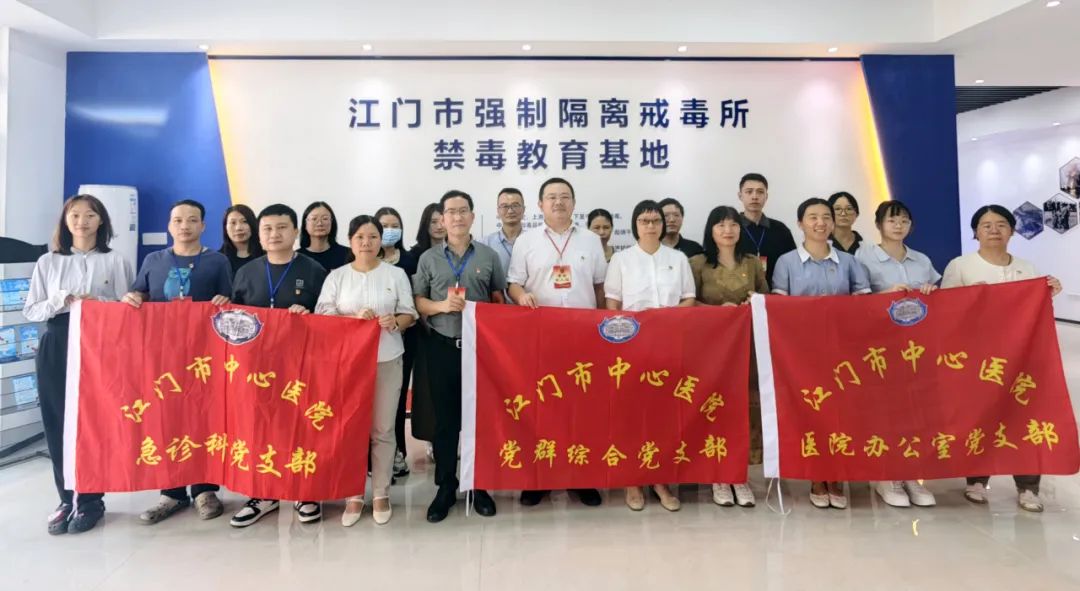 为进一步推动司法行政与医疗健康服务共建融合,凝聚党建促发展惠民生的工作合力,7月16日下午,江门市司法局机关第一党支部、第五党支部联合江门市中心医院党群综合党支部、急诊科党支部、医院办公室党支部,赴市强制隔离戒毒所开展“守初心 遵党纪 担使命”主题党日活动。市司法局党组成员、政治处主任翟继铭和市中心医院党委委员、纪委书记麦少娟等20多名党员参加了活动。