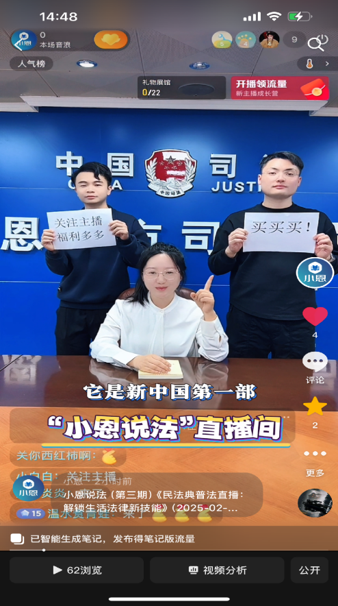 抖音号《小恩说法》则是恩平普法工作的又一创新尝试,它突破了传统的传播媒介和拍摄方式,更加注重内容的简洁明了和趣味性,以带货直播、知识问答、接龙顺口溜、真人小剧场、AI小剧场等多种演绎形式进行摄制,利用抖音、微信平台的广泛影响力和用户黏性促进普法资源共享,契合数字化趋势下自媒体用户快节奏的浏览习惯。