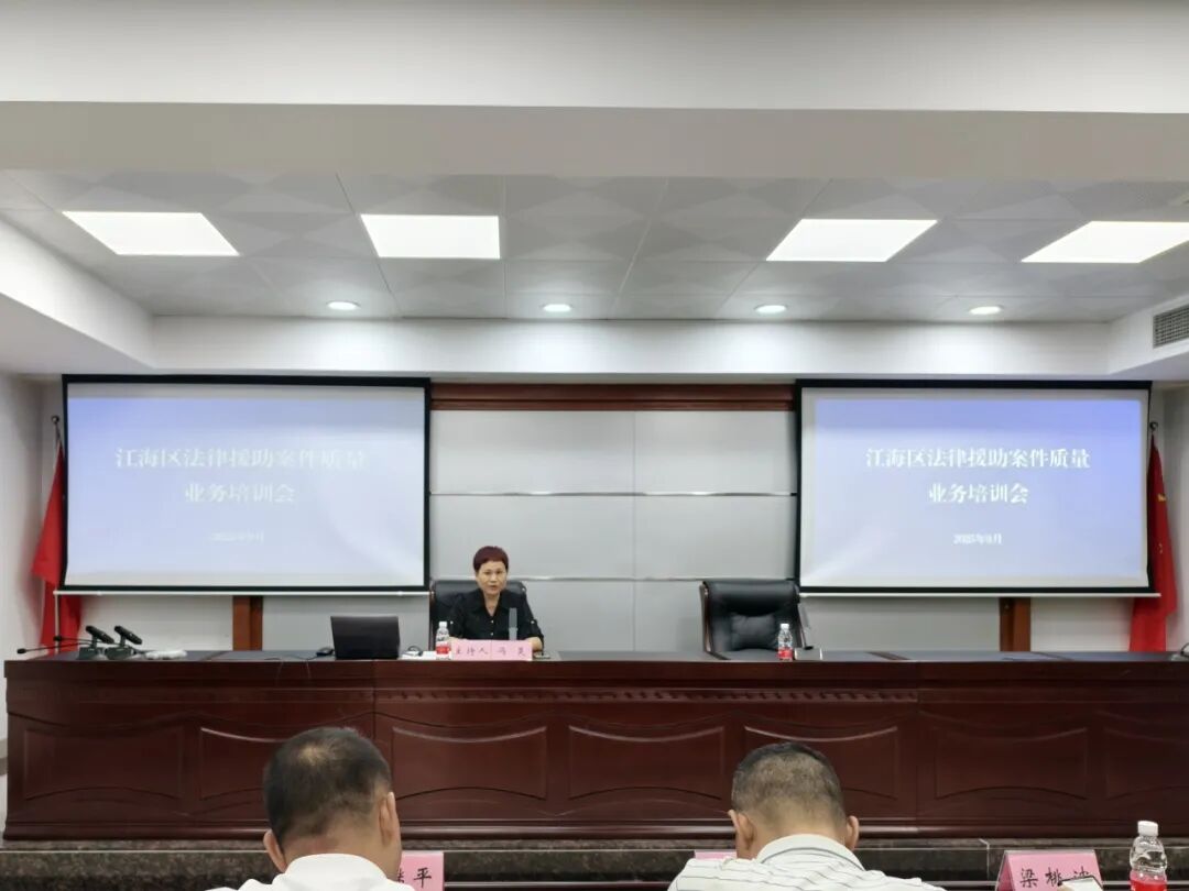 9月12日上午,江门市江海区司法局举办了一场干货满满的法律援助案件质量业务培训会,该局分管领导和法援处全体工作人员、法律援助律师人才库律师、各律师事务所主任和相关实习律师及负责档案管理内勤共计60多人齐聚一堂“充电蓄能”,共助该区法律援助案件质量工作“提质增效”。