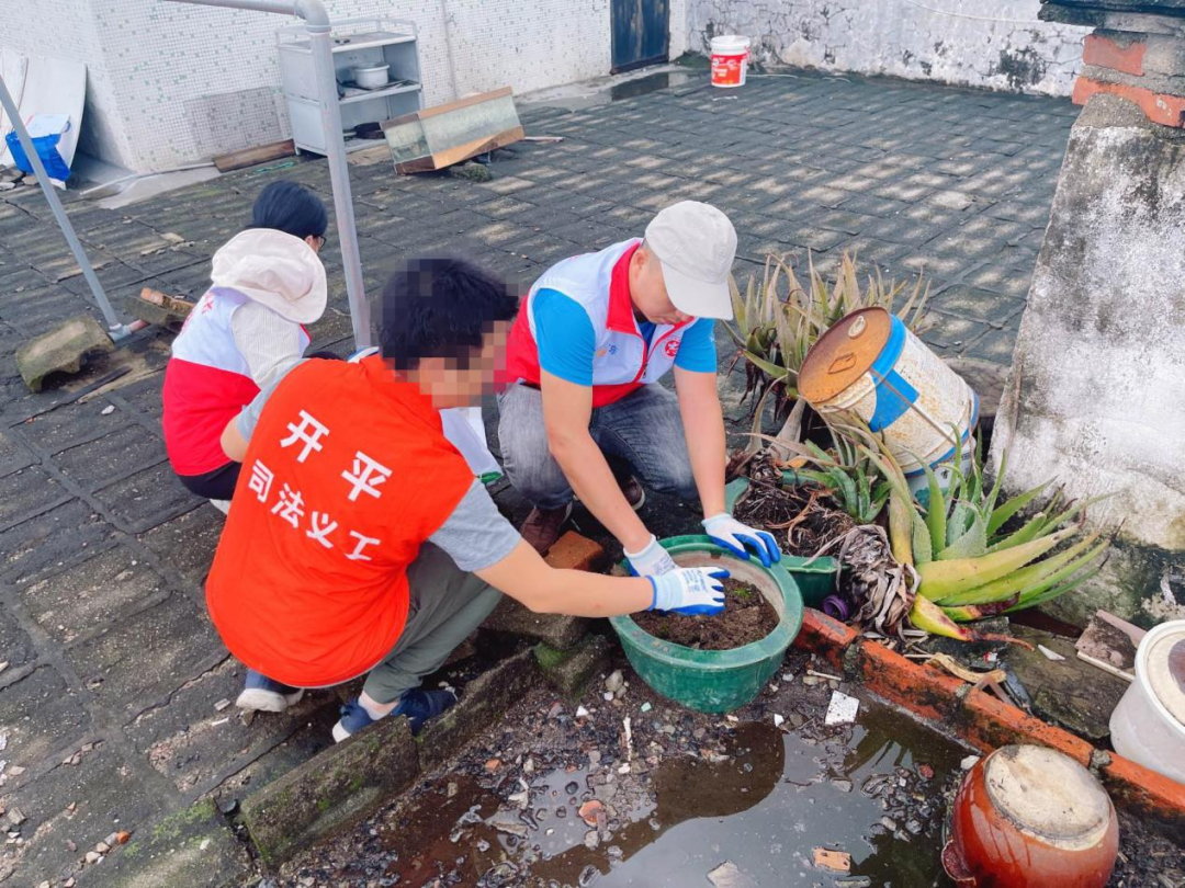清除蚊媒孳生地是防控基孔肯雅热的关键。社区矫正对象主动承担“消杀战斗员”职责,顶着高温深入社区卫生死角、闲置地块、排水沟渠、绿化带等重点区域,认真开展环境清理和灭蚊消杀工作。他们手持工具,翻盆倒罐、清运垃圾、清除积水,协助专业人员配药喷杀,对下水井、垃圾桶、草丛等蚊虫易滋生地点进行彻底处理。尽管汗水浸透衣背,他们始终坚守岗位,用实际行动降低蚊媒密度,有效切断了病毒传播链条。
