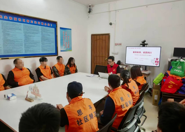 紧扣重阳节“敬老感恩”内核,向社区矫正对象深入阐释传统孝道在当代社会的价值。同时,工作人员通过分享社区矫正对象在家庭支持与社会帮扶下成功融入社会的正向案例,激发其内生动力,引导他们从“被动接受管理”转变为“主动感恩、积极回馈”,从而更清晰地认识并履行自己在家庭与社会中的责任。