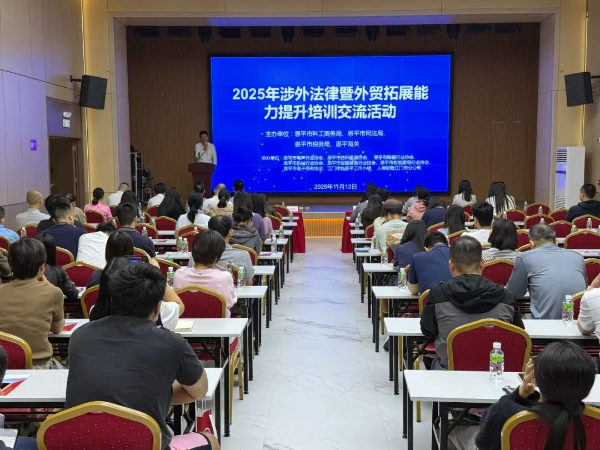 为深入贯彻落实优化营商环境决策部署,强化涉外法律服务供给,精准护航恩平企业“走出去”,11月12日,恩平市司法局联合恩平市科工商务局、恩平市税务局、恩平海关在珠西声谷科创园成功举办“法护营商 律企同行”涉外法律服务暨外贸业务能力提升培训交流活动。活动聚焦当前我市外向型企业发展面临的关键环节与潜在风险,旨在通过精准化的政策解读和专业化的法律指引,为企业“走出去”保驾护航。