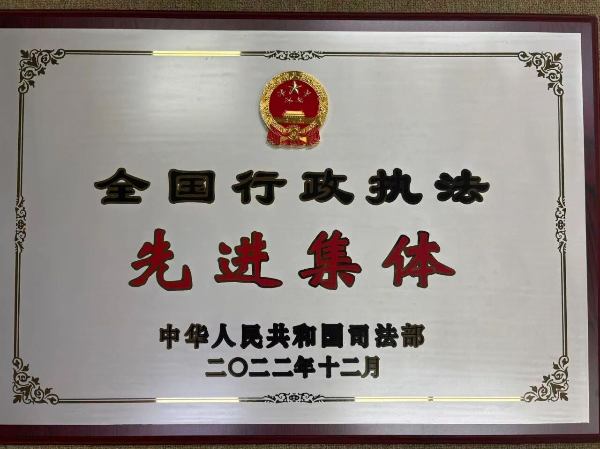 2022年12月,江门市1集体、1个人分别荣获司法部全国行政执法先进集体和先进个人表彰。