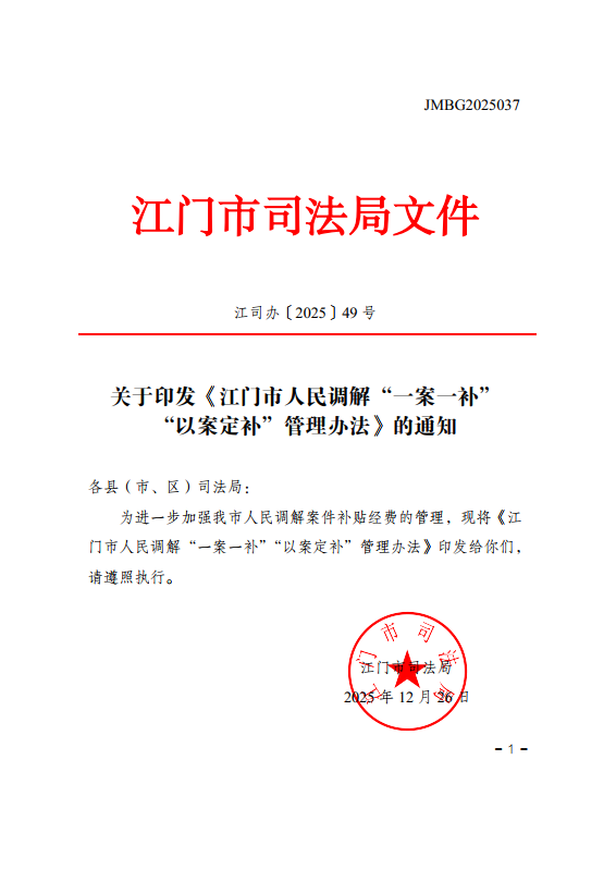 江门市司法局出台《江门市人民调解“一案一补”“以案定补”管理办法》,建立科学激励机制,将调解成效与补贴发放直接挂钩,充分调动全市超万名调解员的工作积极性与主动性。政策红利直达基层,让调解员干事有动力、服务有保障,为全域矛盾纠纷化解注入持久动能。