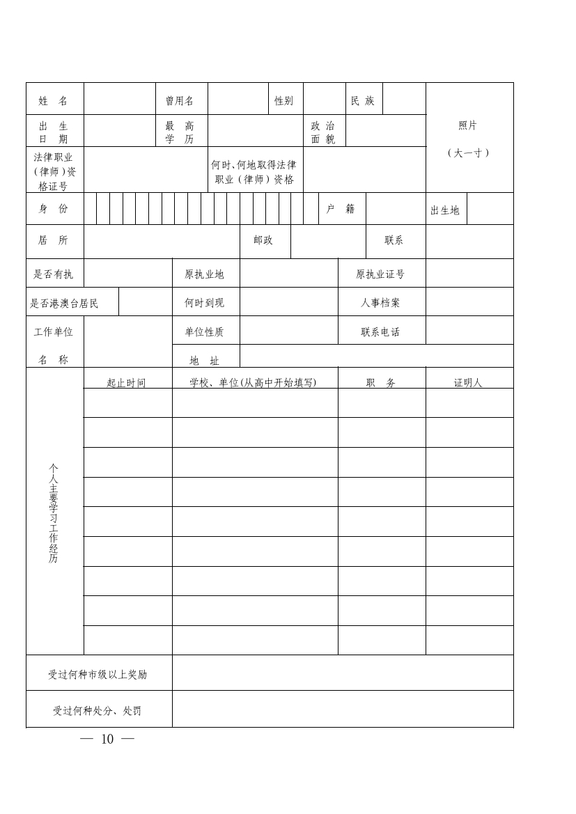 (一)《公职律师证书呈报表》(附表1)、《公职律师执业登记表》(附表2);