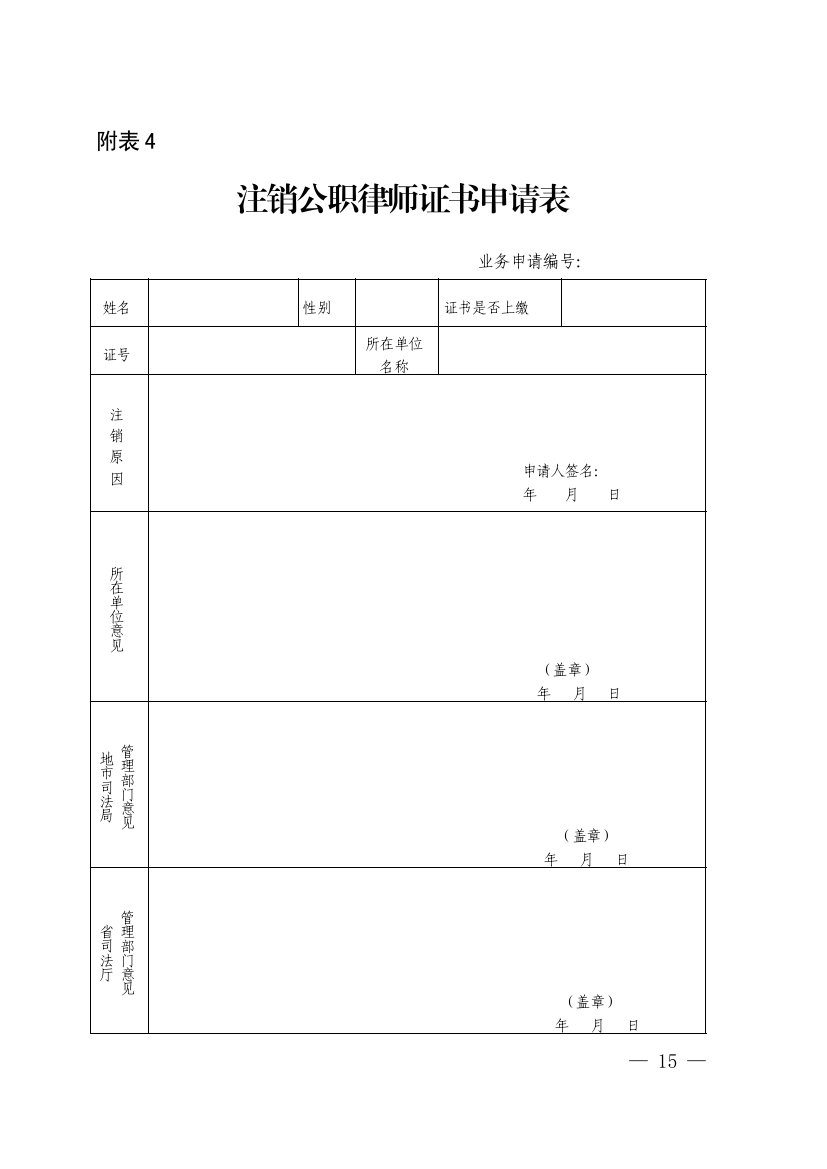 第十三条 申请注销公职律师证书,应当提交下列材料: