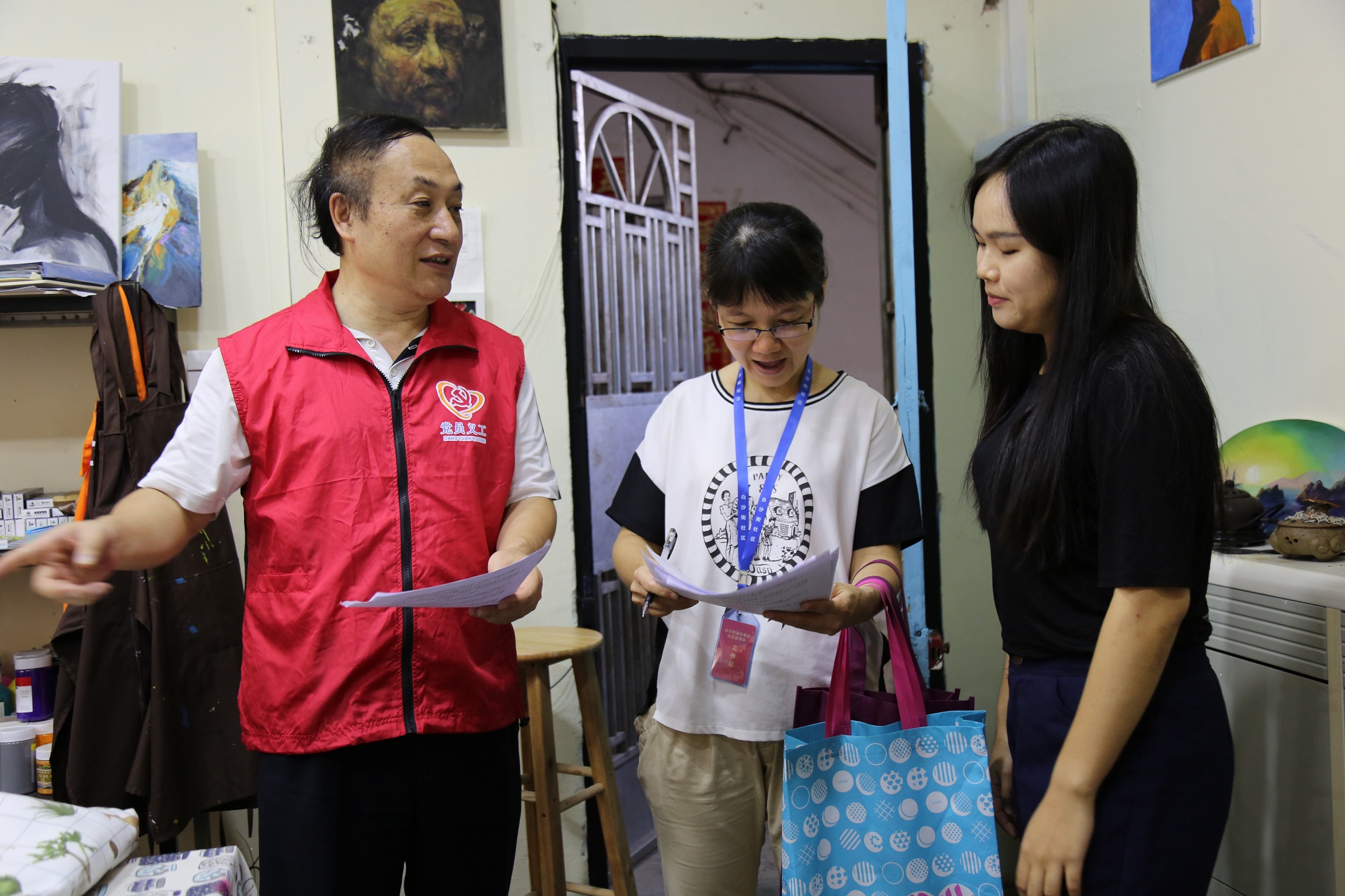 另外一路义工进行入户走访宣传。深入社区逐一登楼、挨家挨户进行走访,将《致市民的一封信》《文明城市创建入户调查问卷》和创文宣传品派发给居民,宣传文明创建知识,呼吁社区居民自觉抵制不文明行为,杜绝乱张贴、乱摆放、乱拉挂,做文明江门人。