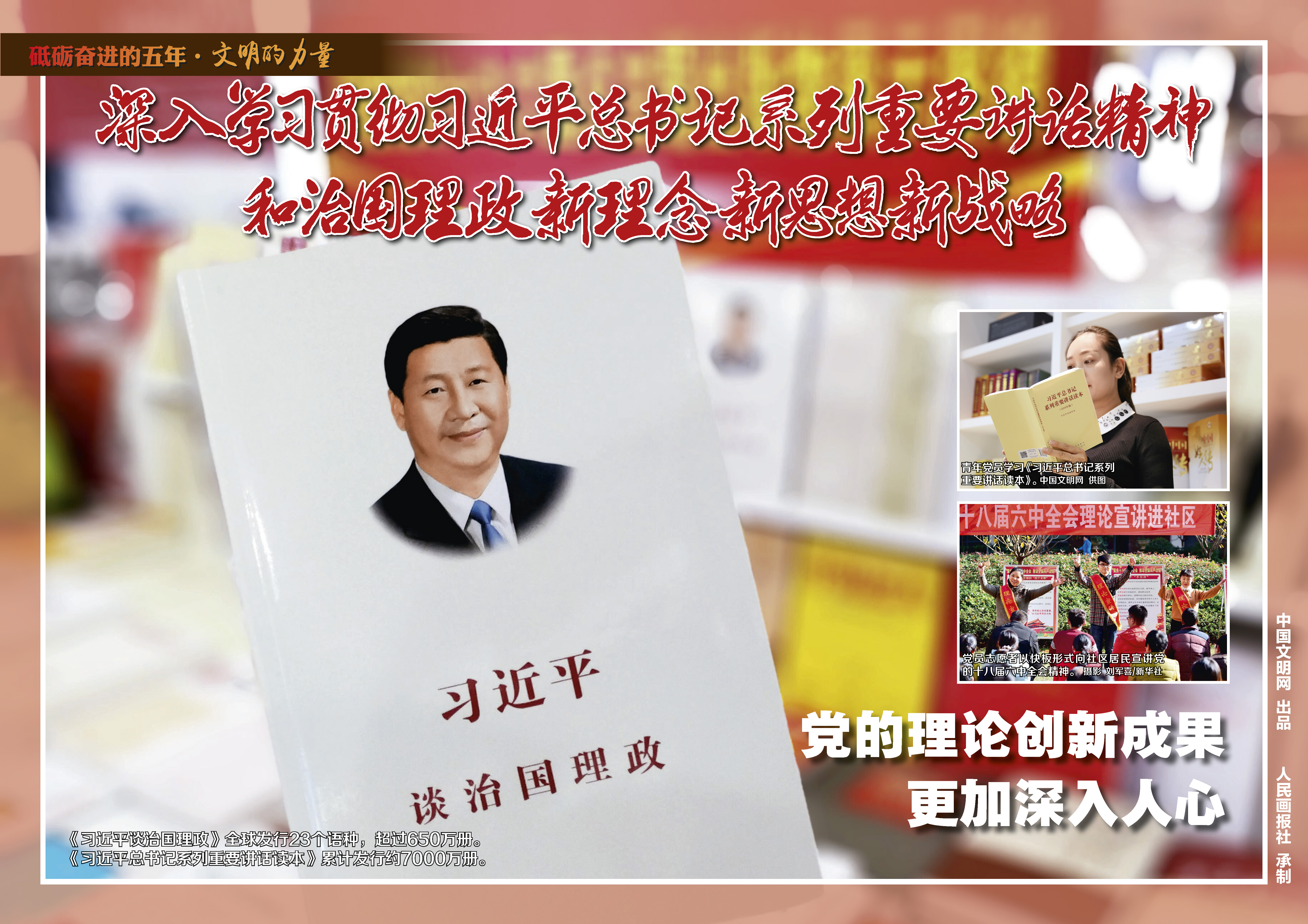 为迎接党的十九大胜利召开,由中国文明网策划出品、人民画报社承制的《砥砺奋进的五年·文明的力量》宣传挂图近日正式推出。