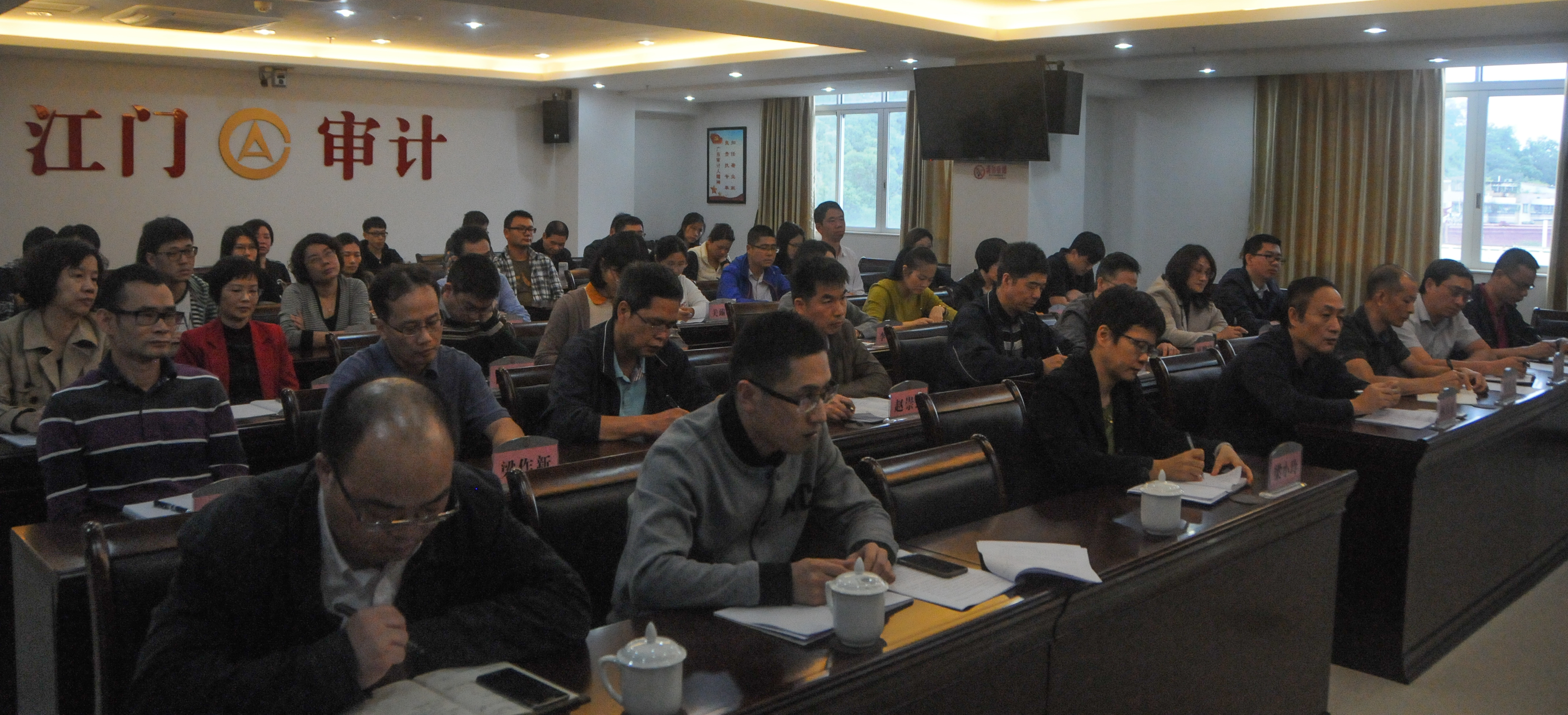 江门市委常委、常务副市长吴晓谋同志、市委组织部副部长赵雪琴同志11月23日来到江门市审计局,在市审计局全体干部职工大会上,赵雪琴同志宣布了市委关于江门市审计局领导职务任免的决定:陈新汉同志任江门市审计局党组书记,凌健能同志任江门市审计局党组成员,免去郭建红同志的江门市审计局党组书记职务。