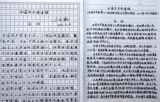 近期,市审计局党支部收集了全体党员和入党积极分子的《中国共产党章程》手抄本,并将书写工整美观的优秀作品在微信等平台进行展示。