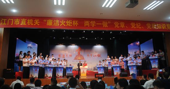 5月30日,江门市直在市广播电视大学礼堂举行“廉洁火炬杯”暨“两学一做”党章党纪党规知识竞赛,市审计局党支部代表队选派3名党员吕 翼、关臻华和陈奕珊同志参加竞赛,他们在繁忙的工作中,进行了认真、艰苦的备战。