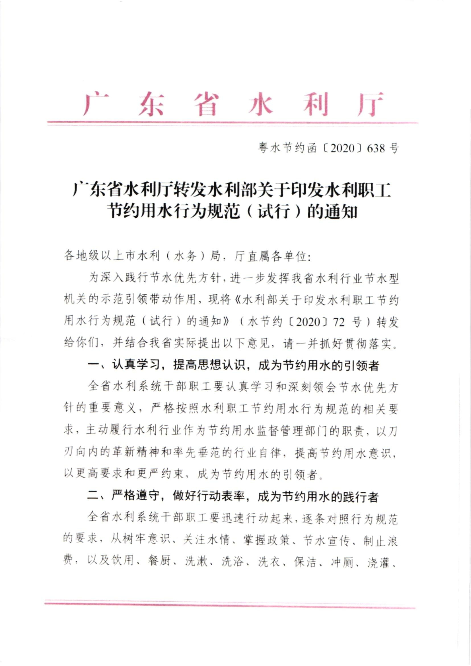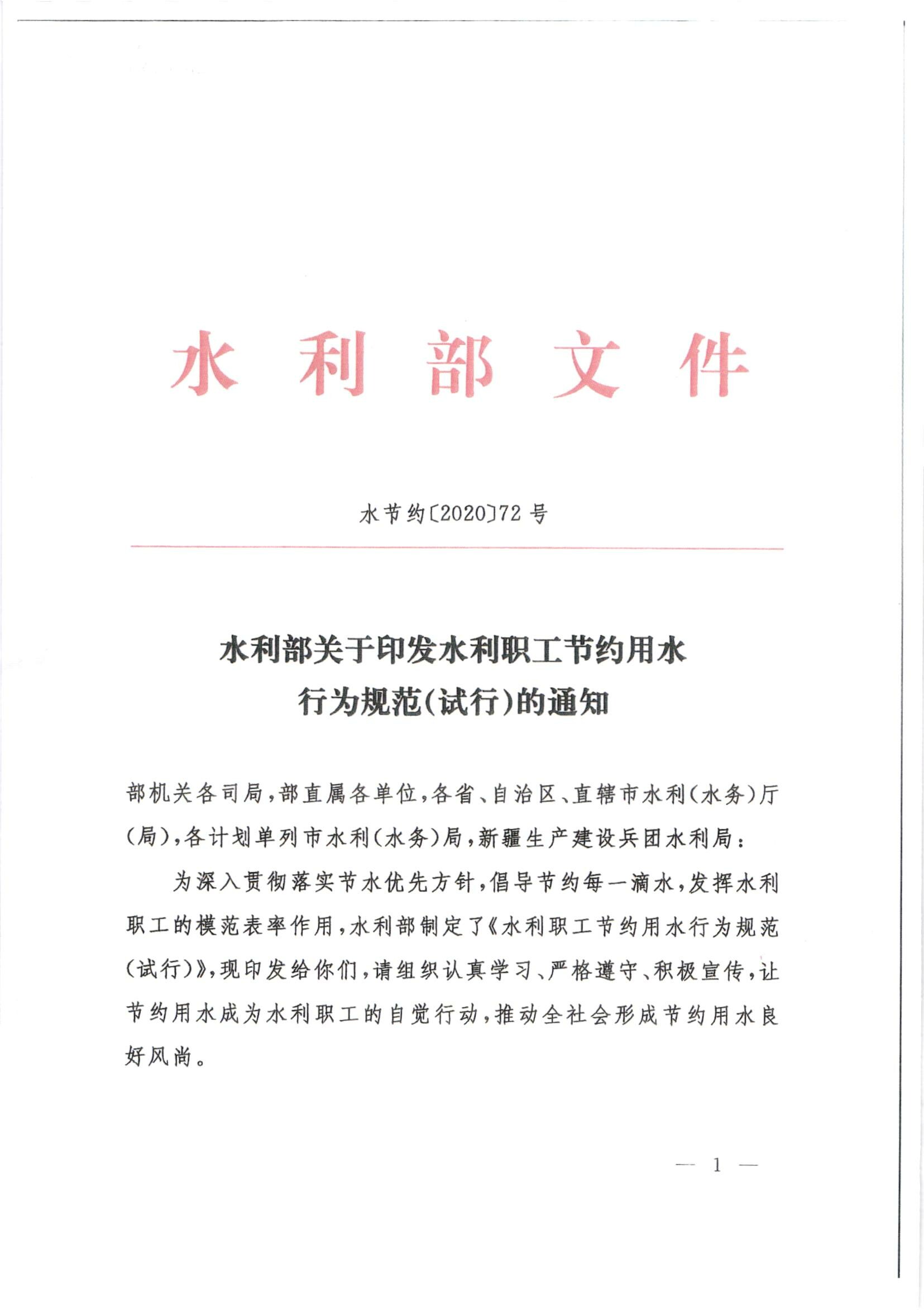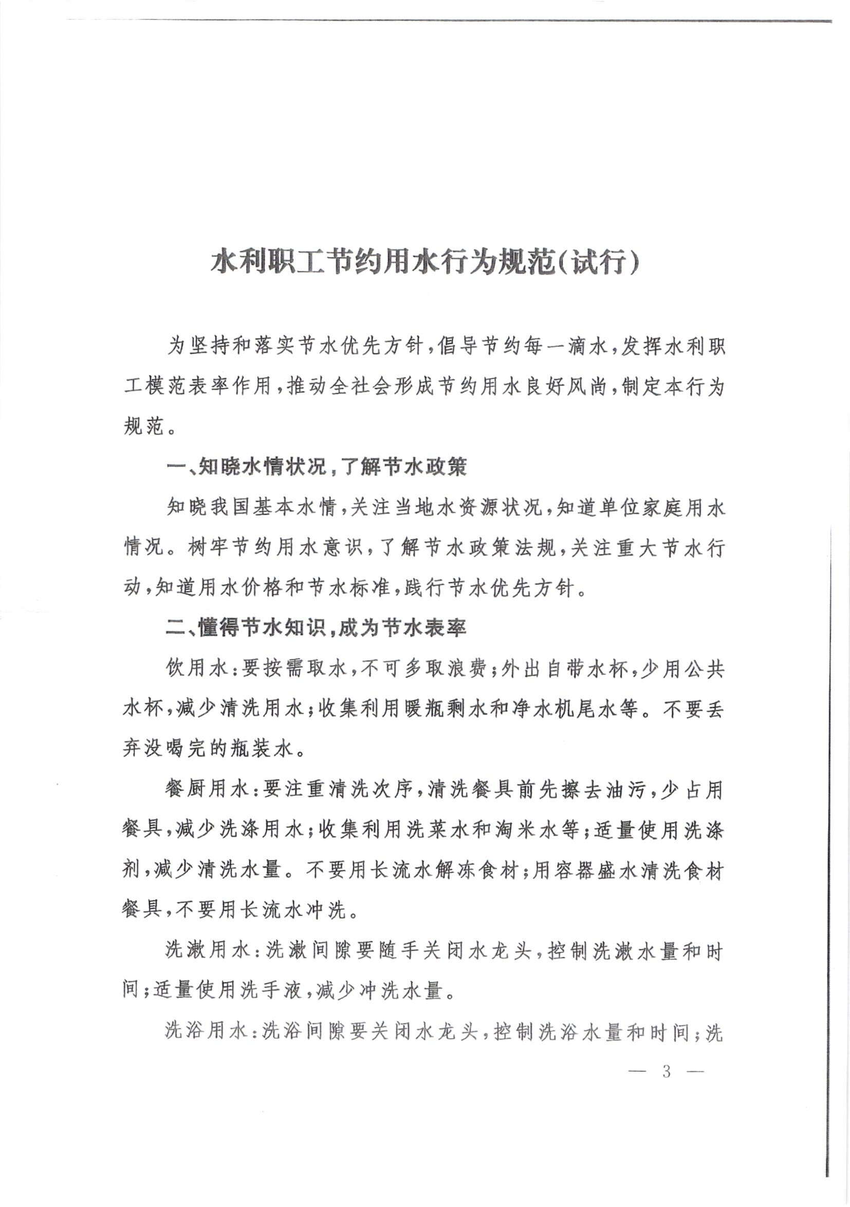 转发关于印发水利职工节约用水行为规范(试行)的通知