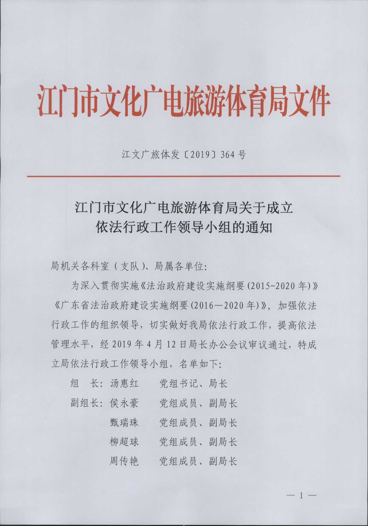 江门市文化广电旅游体育局关于成立依法行政工作领导小组的通知