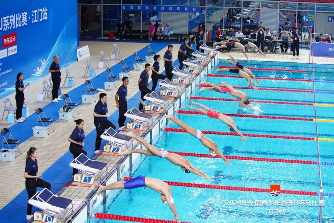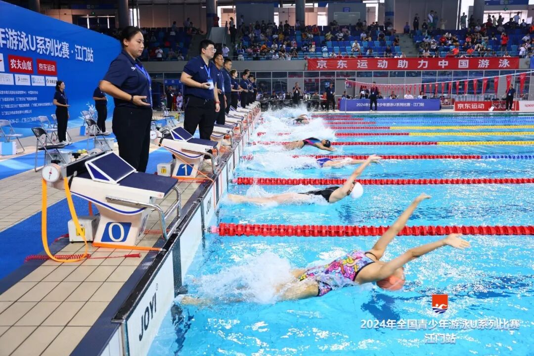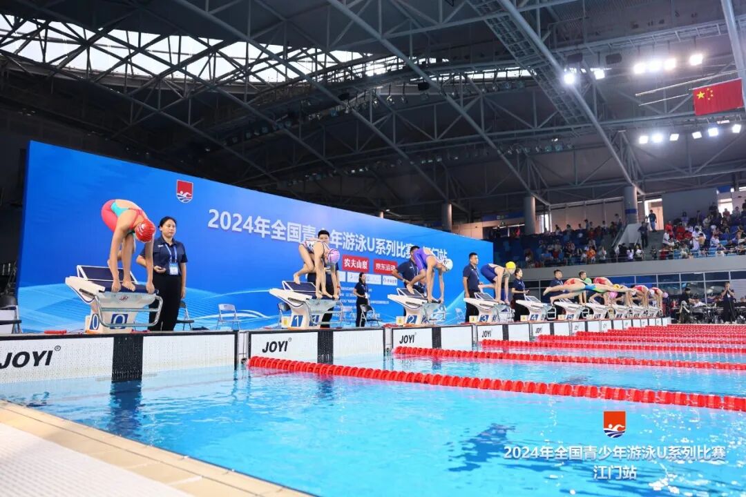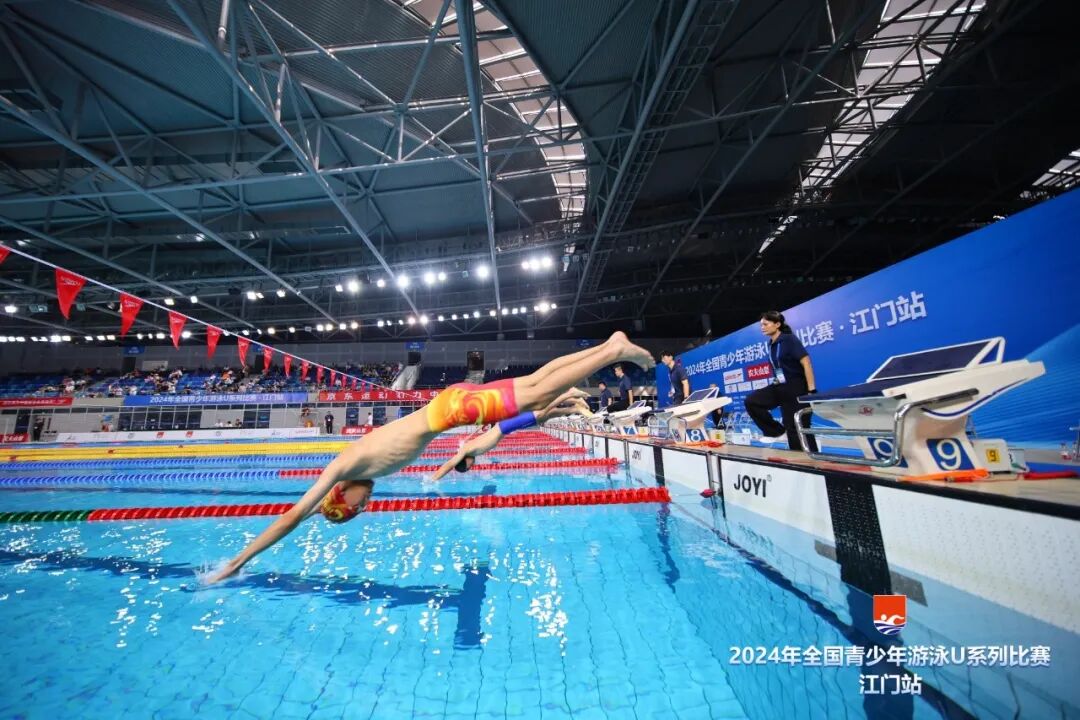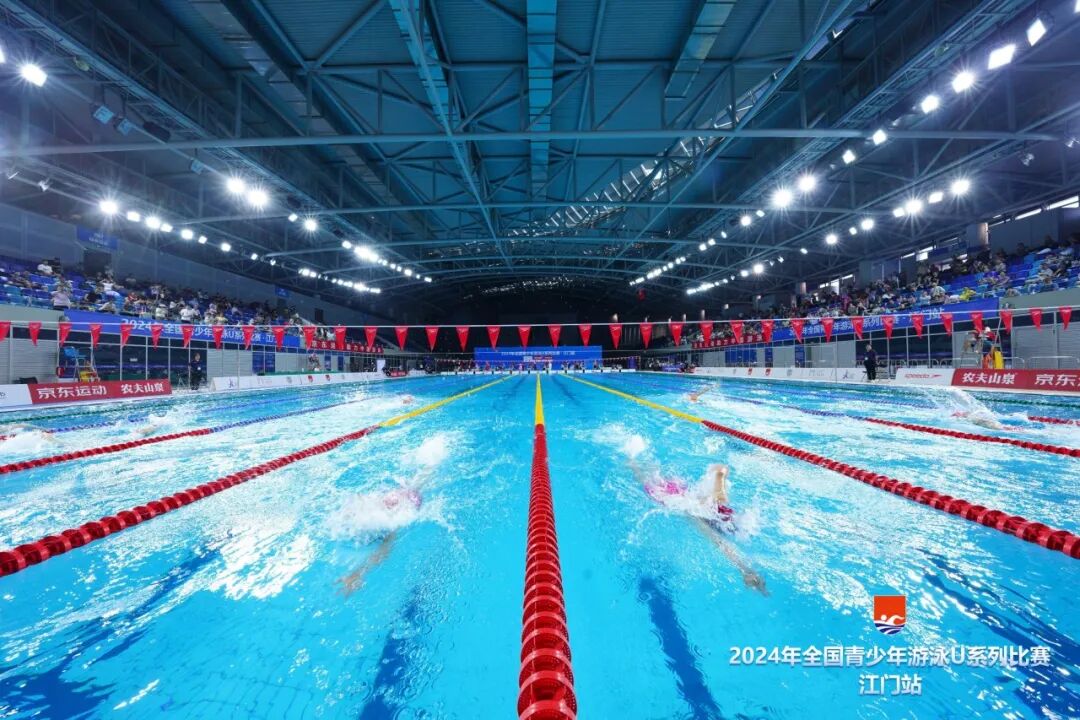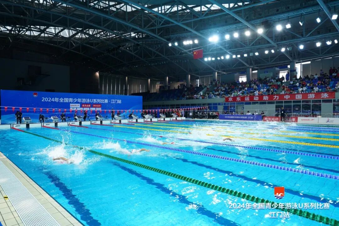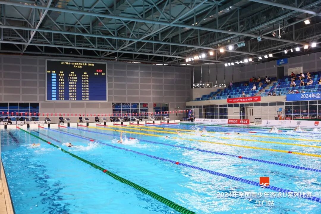 2024年全国青少年游泳U系列比赛·江门站,由国家体育总局游泳运动管理中心、中国游泳协会主办,广东省游泳协会、江门市文化广电旅游体育局承办,江门市蓬江区文化广电旅游体育局、广州星汇体育科技发展有限公司协办,江门滨江华体体育会展中心有限公司运营,是江门体育中心首次承办国家级的游泳赛事。