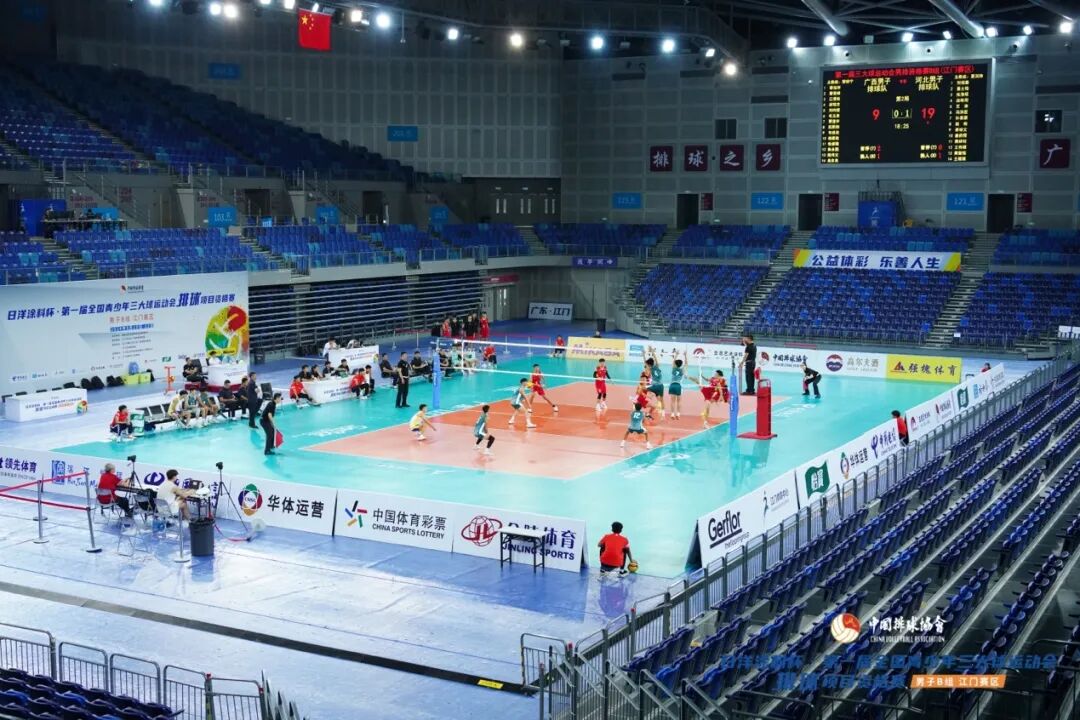 9月23日,日洋涂料杯·第一届全国青少年三大球运动会排球项目资格赛男子B组(江门赛区)结束13个比赛日(78场次)的激烈争夺,在江门体育中心体育馆顺利落下帷幕。该项赛事由国家体育总局排球运动管理中心主办,江门市文化广电旅游体育局承办,江门市蓬江区文化广电旅游体育局、江门市排球协会协办,江门滨江华体体育会展中心有限公司运营。