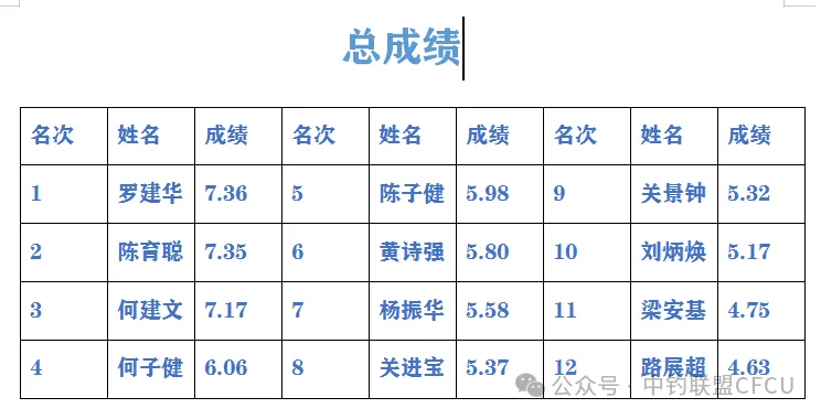 各项成绩出炉!