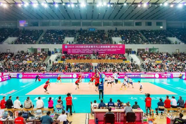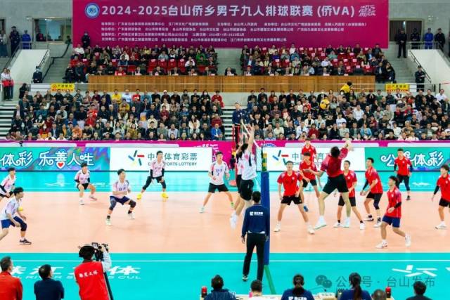 2月12日晚,2024-2025年台山侨乡男子九人排球赛(侨VA)决赛在新宁体育馆打响。在当晚的比赛中,白沙队再次勇夺冠军,台城队获得亚军,四九队收获季军。广东省体育局群众体育处副处长张壮文,广东省社会体育和训练竞赛中心副主任吕璇,江门市文化广电旅游体育局局长邝积康,台山市委书记郑劲龙,市委副书记、代市长吴楷钊,市政协党组书记、主席陈瑞琪,市领导方健康、刘子奕与现场超过6000名球迷一同观赛,见证台山的排球盛宴。