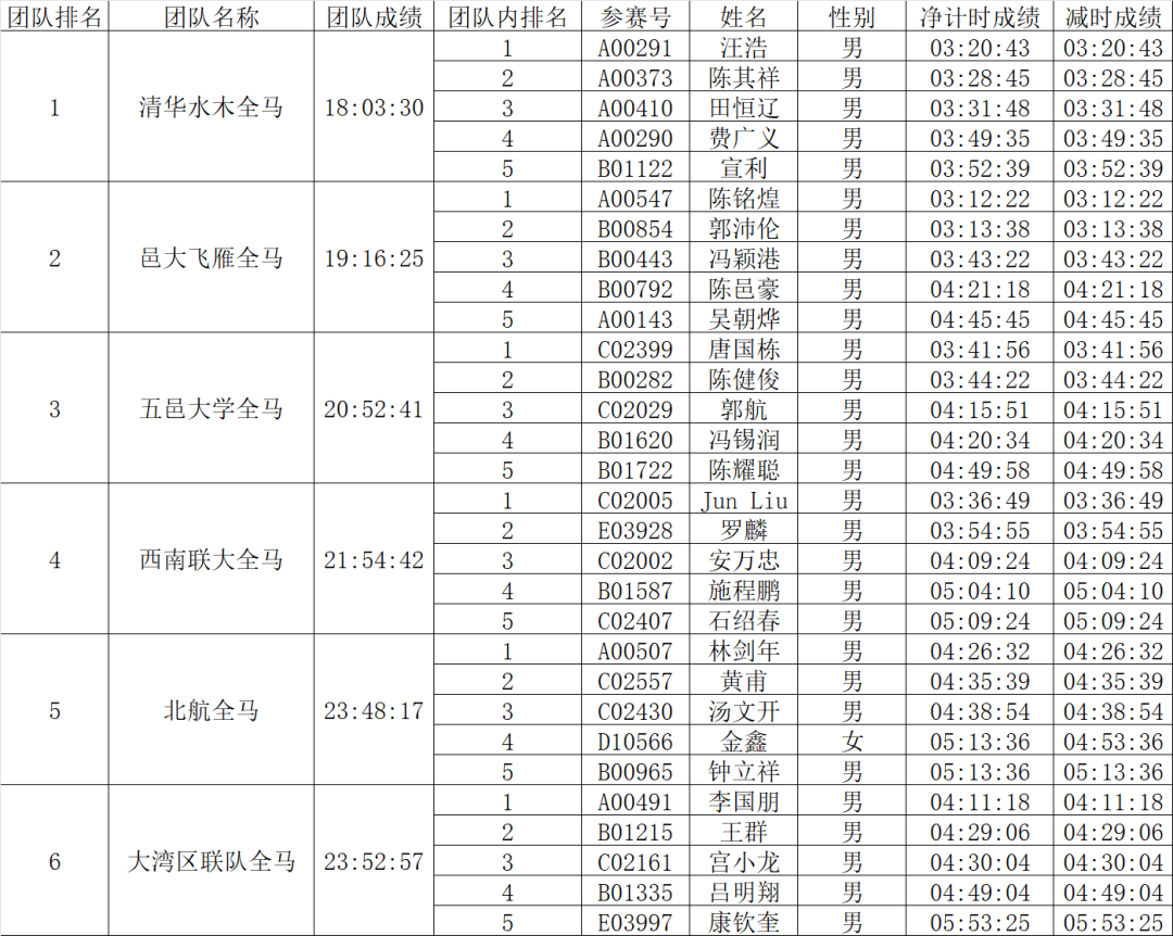 (一)马拉松男、女(净计时)前十名将获得以下奖励(单位:人民币)