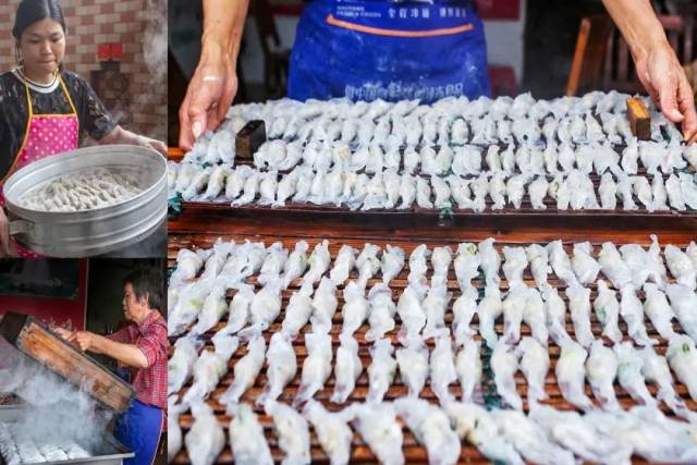 在雅瑶镇黄洞村,有着别具特色的黄洞米点,其制作技艺已有近百年历史。黄洞米点包括有白水角、团糍、糍必、鸡屎藤糕等乡间小食。