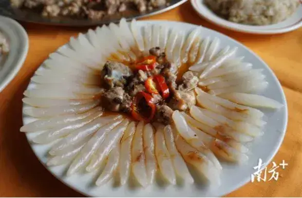 都说“冬吃萝卜夏吃姜”,台山白沙的人则会说,吃萝卜要到潮境挖。白沙潮境地区七分沙、三分泥的土地和优质水源种植出风味十足的潮境萝卜,其做法种类繁多,并且极具特色。常见的有用潮境萝卜配上牛腩做成的牛腩萝卜,浓香的牛腩加上清甜鲜嫩的萝卜带出的清香和鲜美,让人垂涎欲滴。
