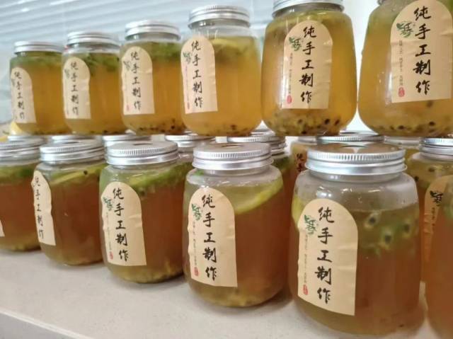 而是将凉瓜肉粒与柠檬百香果汁混合在一起,