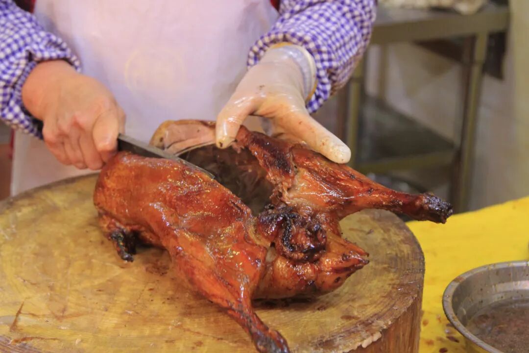 想蹲新鲜出炉的烧鹅,