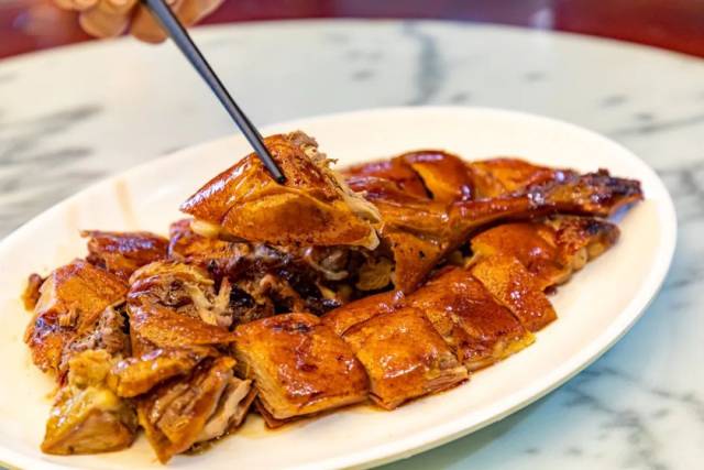 新鲜出炉的烧鹅色泽光亮,