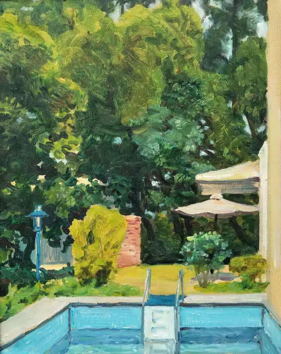 《部落里的泳池》 杨尧70cm × 55cm 油画 年代不详