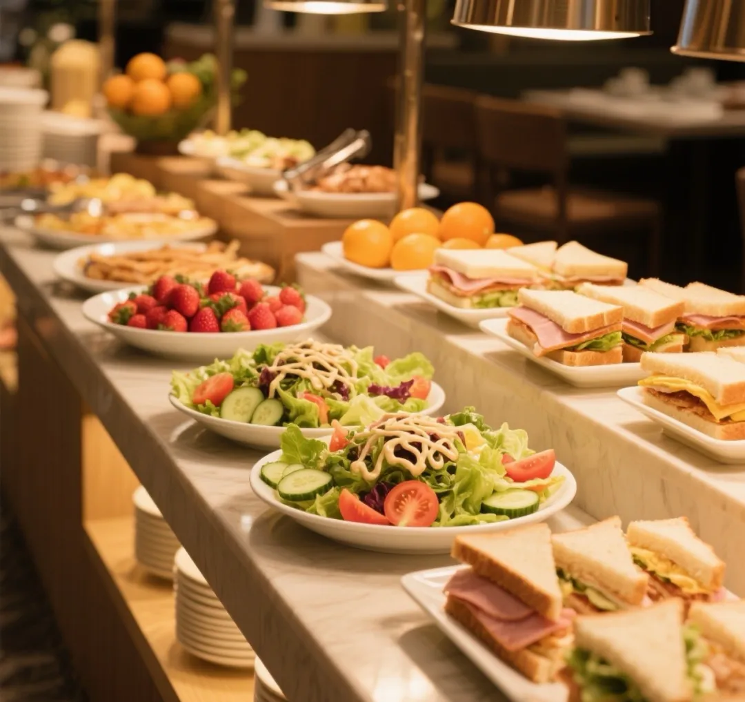 ▲绿色轻食自助餐、特色餐饮(图源:古兜温泉度假区)