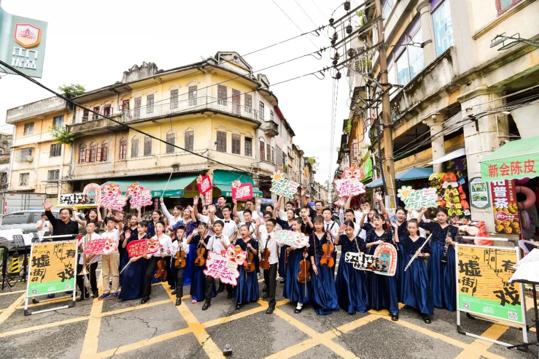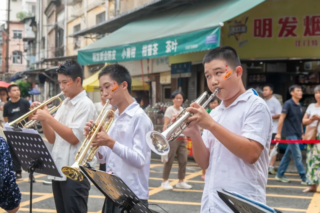 7月12日午后,江门长堤历史文化街区,百年骑楼静静矗立。一场由江门市文化广电旅游体育局指导、江门市文化馆精心策划的“江门三点三精彩之旅•墟街有戏”器乐演出 ,为古街注入了澎湃动力。