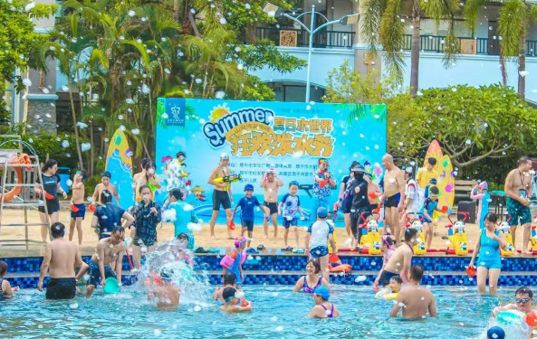 山泉湾温泉城以“冰爽泼水节”为核心,