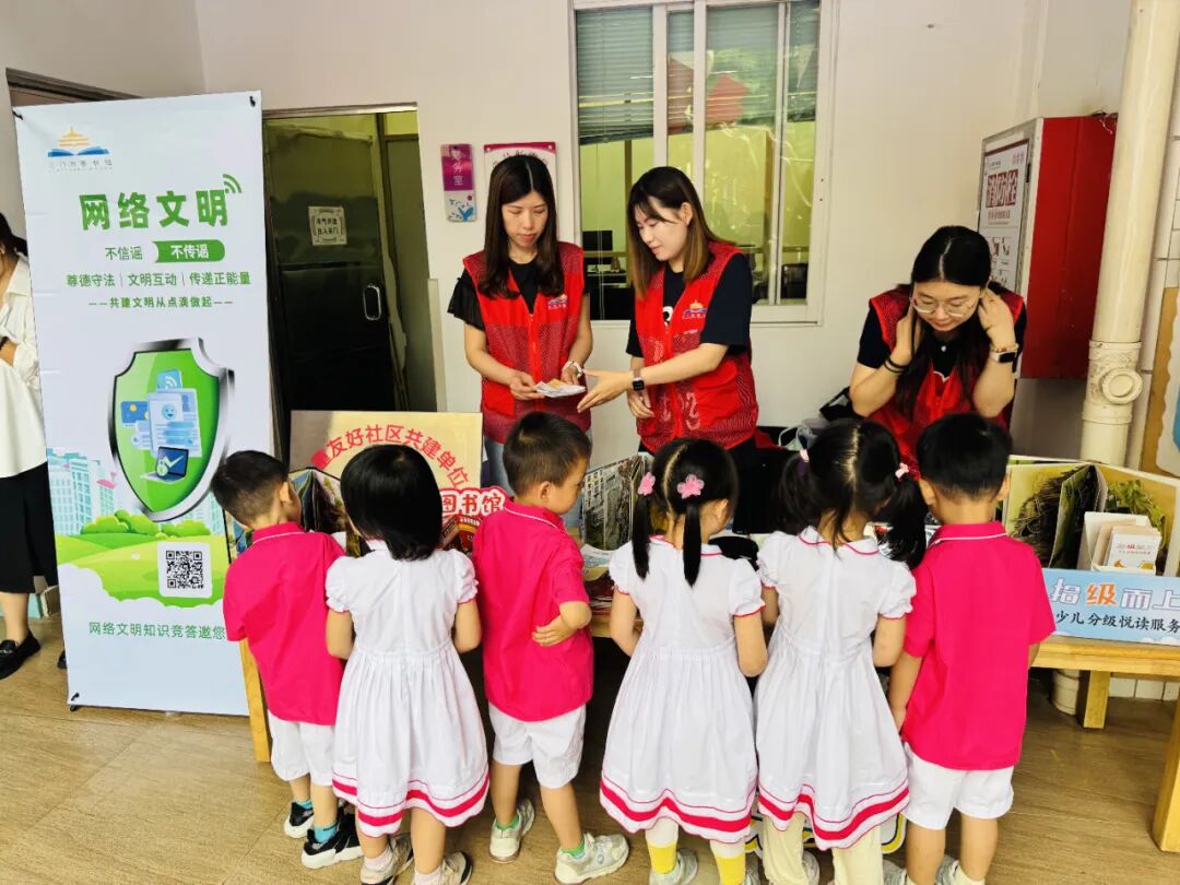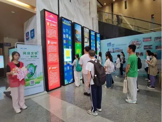 除了提供丰富的阅读资源、智慧化阅读环境,江门市图书馆还组织了多元融合的活动。一方面,联合学校、社会团体通过“邑起阅读大联盟”“悦读快车”等活动,开展网络文明素养教育,形成良好社会影响力。与市科协、市气象局等合作,举办“童创世界——小小科学家”科普活动40余场,潜移默化地提升青少年网络文明素养。另一方面,通过“线上+线下”融合模式,精心打造“指尖触屏・阅读润心”四大数字阅读活动和网络文明扫码答题活动等,助力市民学习网络安全等知识,树立文明上网意识。此外,江门市图书馆参与“防范网络暴力・共享文明和谐”主题漫画形式巡展进校园活动。并充分利用图书馆网站、公众号、视频号等数字阅读平台,定期推送网络文明素养教育的电子书单和视频等,为市民读者提供积极健康、向上向善的网络文化,营造风清气正的网络空间。