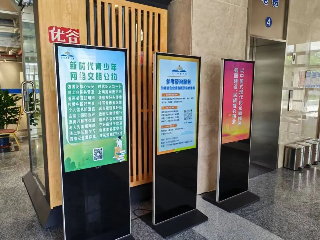 数字化文明成果显著,江门市图书馆以先进理念加智慧阅读设备,打造智能化阅读环境,助力网络文明素养实践教育基地建设。在主楼大堂瀑布流,展示江门市道德模范、江门市籍的中国好网民,供读者点击阅览,传递文明榜样正能量。主楼三楼的电子文化长廊,精选了100多种网络安全主题的专业电子图书,让市民读者点击即可在线阅读或扫码轻松带回家阅读,这增强了读者网络安全防范意识。主楼三楼数字阅读区,每台上网电脑桌面都精心放置《新时代青少年网络文明公约》,以提醒上网读者注意事项,形成文明上网好习惯。