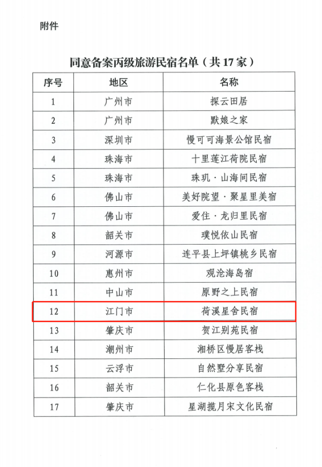 江门市新会区荷溪星舍民宿成功入选,