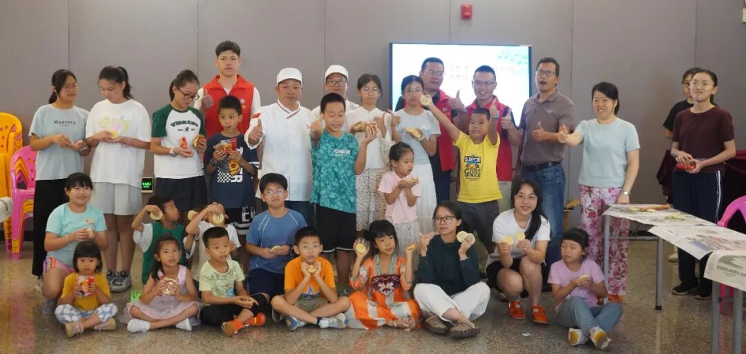 恩平市金蝴蝶食品有限公司还为活动带来了惊喜。工作人员端出精心准备的土法黑豆沙月饼、传统五仁月饼以及老婆饼,供学员品尝。土法黑豆沙月饼的豆沙细腻绵密,甜而不腻,保留着传统工艺的质朴风味;传统五仁月饼则以丰富多样的坚果馅料,散发着醇厚香气,咬上一口,酥脆与坚果的嚼劲完美融合;老婆饼金黄诱人,外皮层层叠叠,轻咬一口便簌簌掉落,内馅的黑豆沙香甜软糯,令人回味无穷。大家围坐在一起,一边品尝美食,一边交流着对传统糕点的喜爱,现场氛围温馨又热烈。