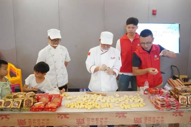 为传承发扬江门五邑地区非物质文化遗产,积极构建优质文化资源直达基层的长效机制,着力推动我市全民美育工作深入开展,充分发挥文化馆“全民艺术普及”阵地作用和城乡居民终身教育职能。8月8日,由江门市非物质文化遗产保护中心联合恩平市金蝴蝶食品有限公司举办的第59期江门市“邑”起学非遗——婚庆礼饼技艺体验课在江门市文化馆举行。活动邀请到了县(市、区)级婚庆礼饼技艺项目代表性传承人李活常,他和张斌经理一同带领30多名学员体验婚庆礼饼中的经典老婆饼的制作技艺,感受传统美食背后的文化底蕴。