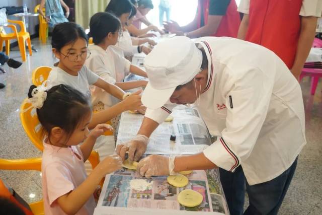 一位学员兴奋地说:“平时就爱吃老婆饼,没想到制作过程这么复杂,今天带着孩子不仅学到了手艺,还了解了背后的文化,特别有意义。” 活动现场欢声笑语不断,不一会儿,一个个形状不一,却又各具特色的老婆饼就被大家捏制而成,孩子们情不自禁地把自己的杰作捧在手心里,小心翼翼地呵护着,脸上露出了满意的笑容。